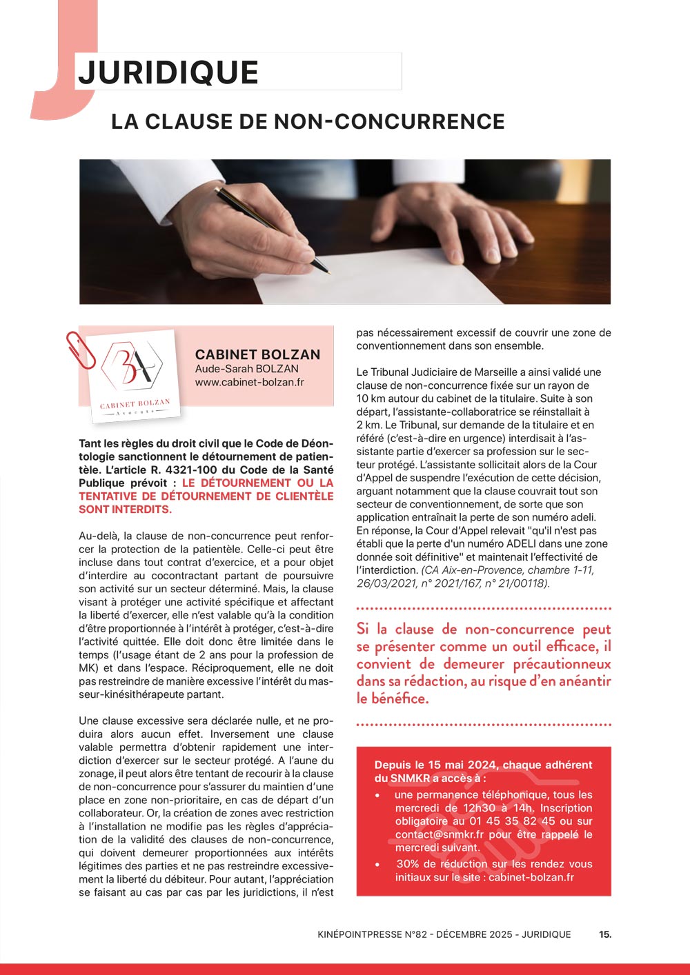 Fort de son expérience du terrain, qu’il s’agisse de contentieux ou de conseil, le Cabinet Bolzan Avocats a développé sa propre offre de formation à destination des infirmières et masseurs-kinésithérapeutes, afin de les guider de manière opérationnelle et concrète dans l’exercice de leur activité libérale.